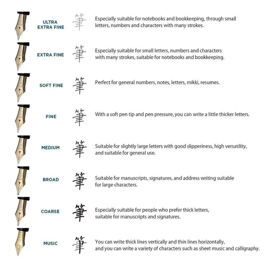 - Wide range of 8 nibs from Ultra Extra Fine to Music