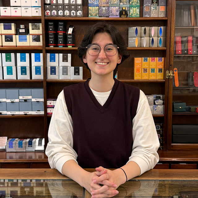 Natalina has always been a very hands-on person, whether they're working with fibre arts or musical instruments, and the written word is no exception. They brought a longstanding love of paper products and has since learned and developed a love for the once-intimidating world of fountain pens and inks, ready to help you continue (or begin!) your journey with our products.